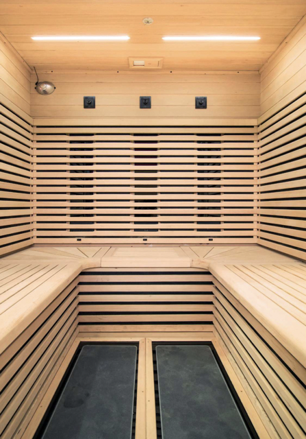 Des panneaux infrarouges au sol en verre dépoli, au toucher doux assurent une chaleur agréable et homogène.
